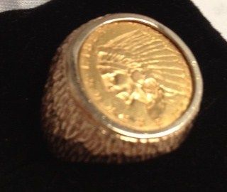 1909 $2.5 GOLD INDIAN HEAD 14K GOLD MENS RING