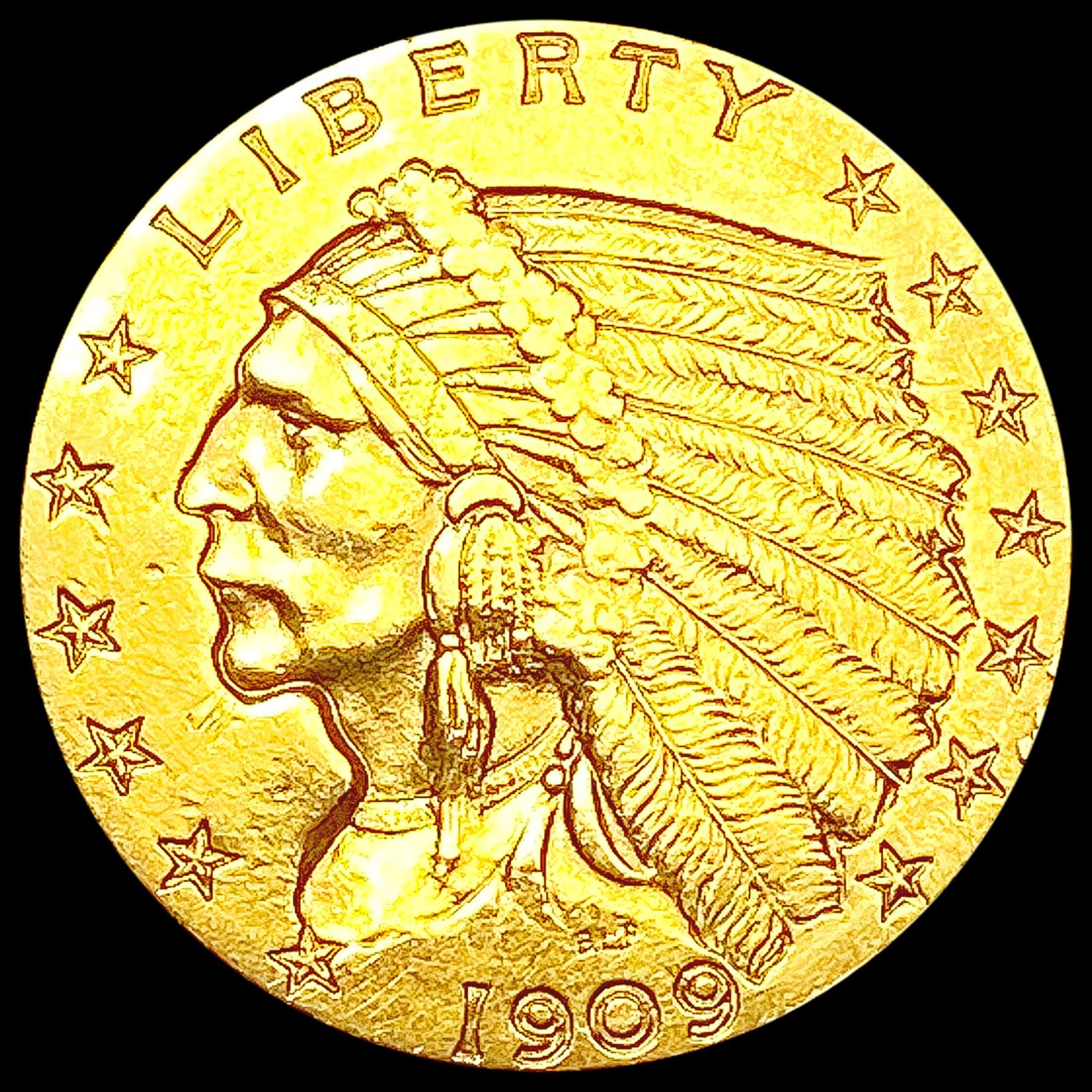 1909 $2.50 Gold Quarter Eagle CLOSELY UNCIRCULATED