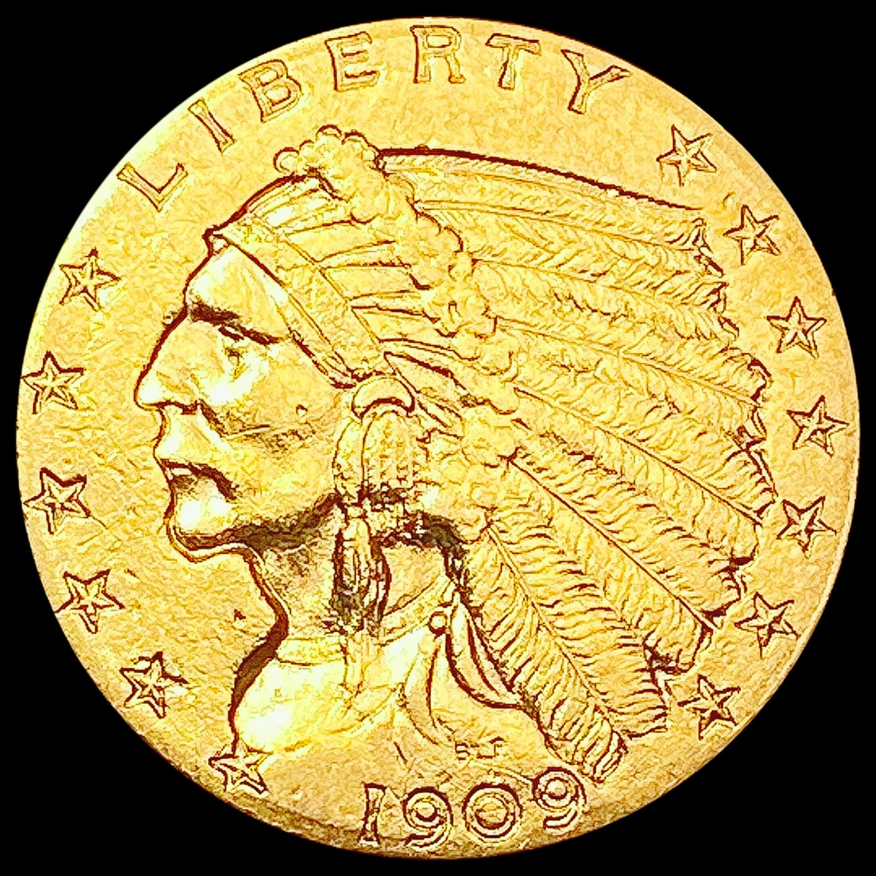 1909 $2.50 Gold Quarter Eagle CLOSELY UNCIRCULATED
