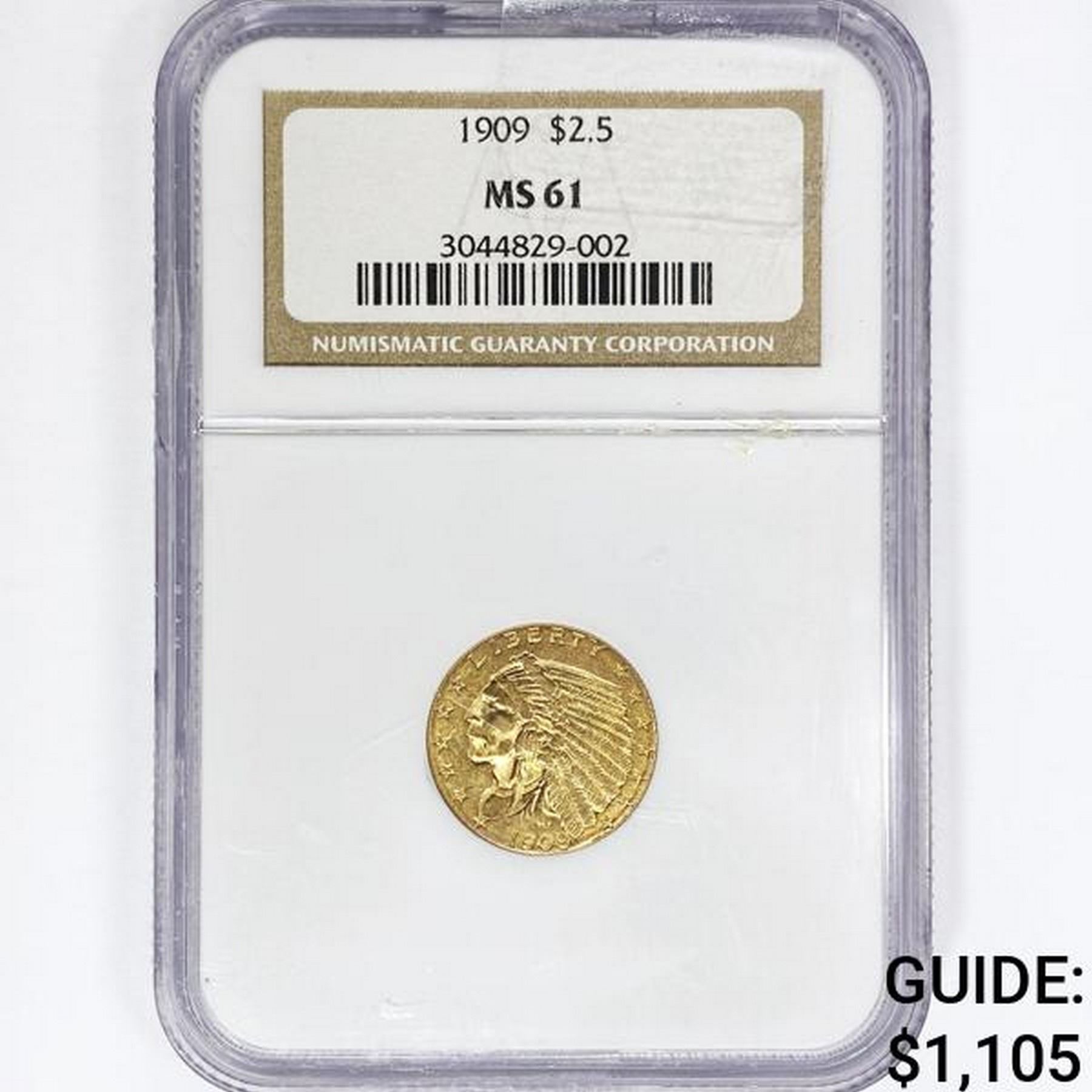 1909 $2.50 Gold Quarter Eagle NGC MS61