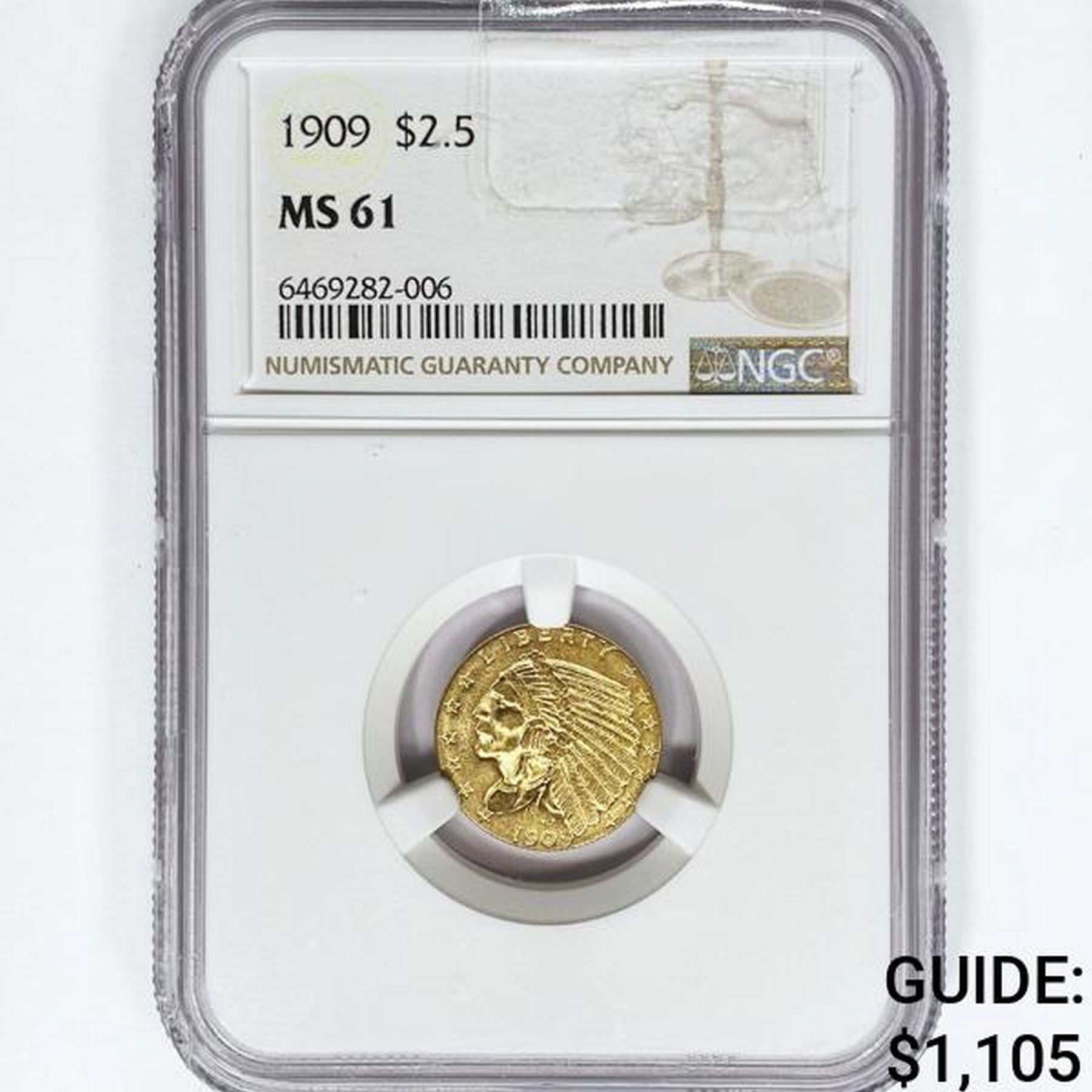 1909 $2.50 Gold Quarter Eagle NGC MS61