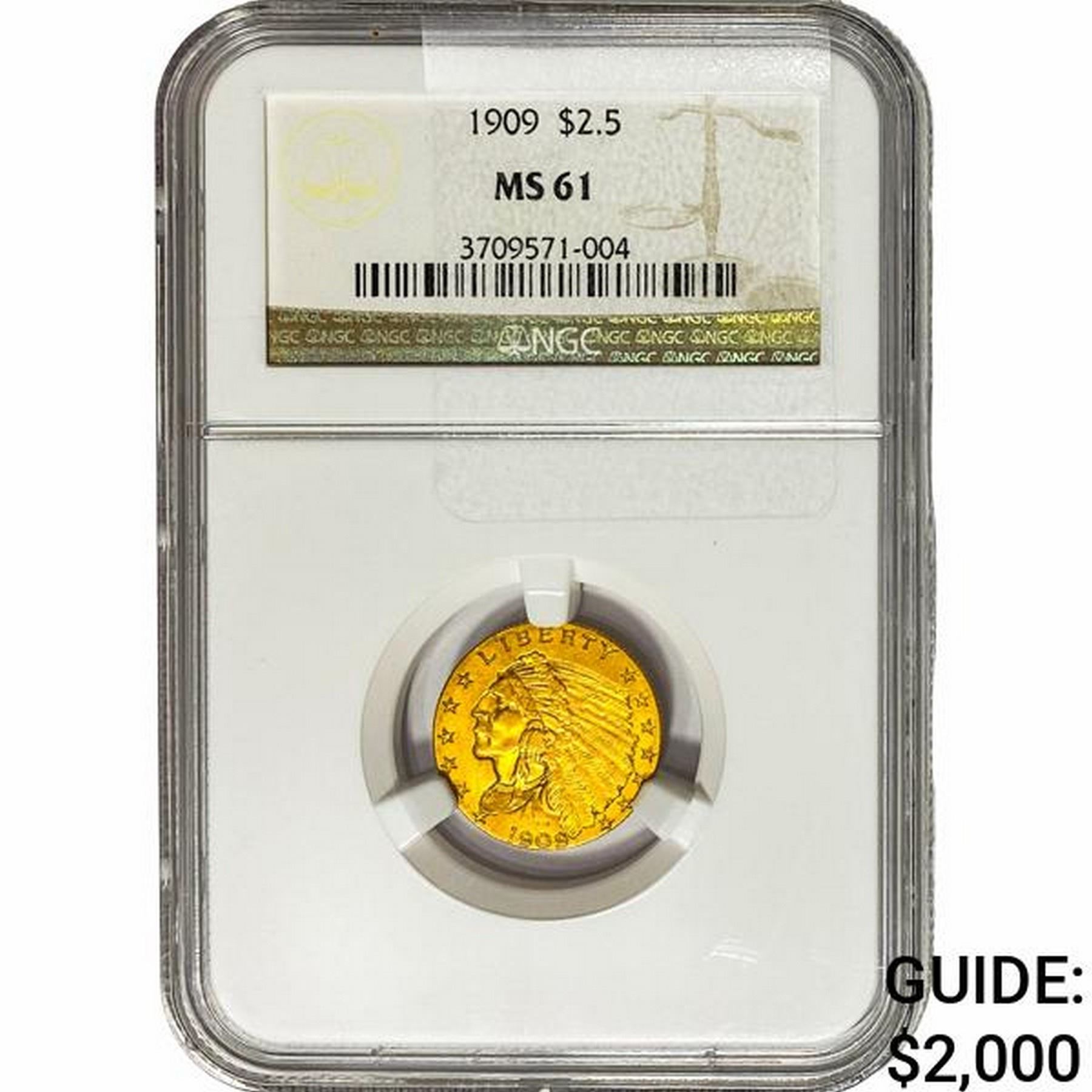 1909 $2.50 Gold Quarter Eagle NGC MS61