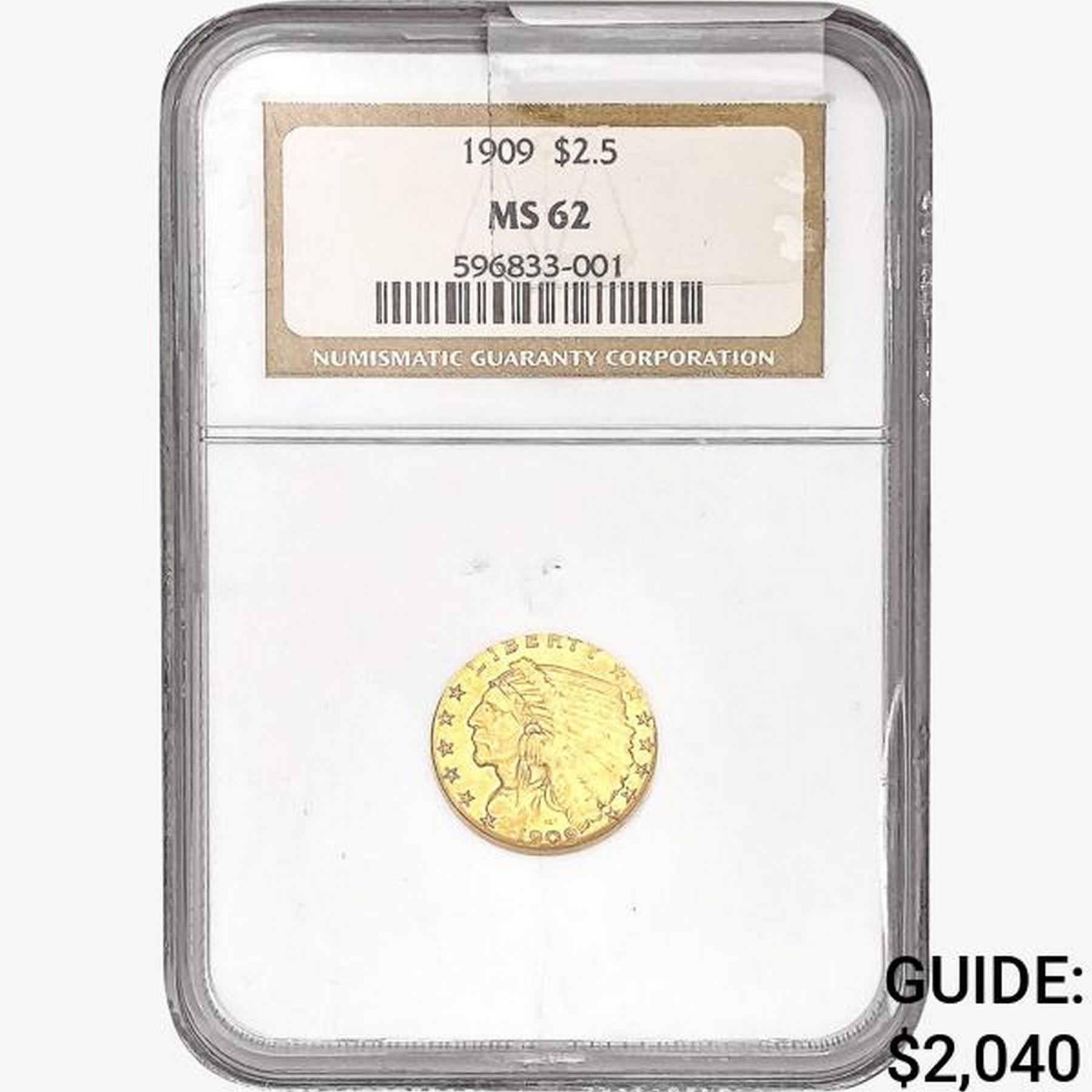1909 $2.50 Gold Quarter Eagle NGC MS62