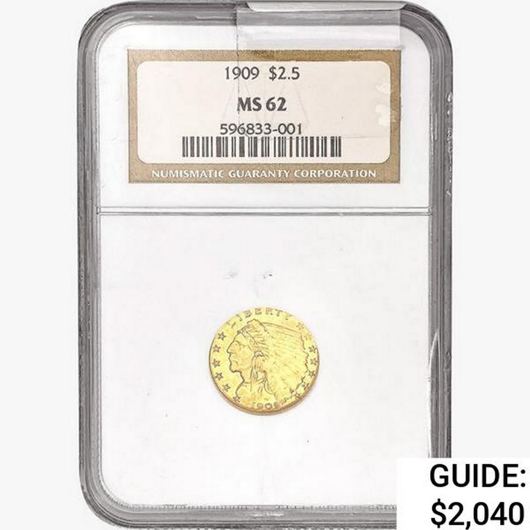 1909 $2.50 Gold Quarter Eagle NGC MS62