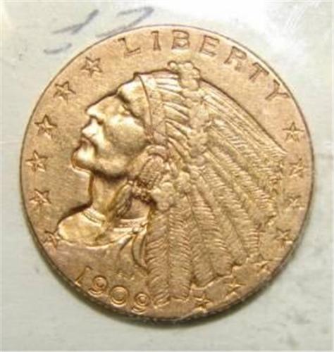 1909 $2 ½ U.S. INDIAN GOLD COIN. EF.