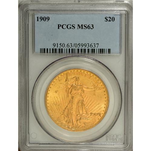 1909 $20 MS63 PCGS. With a mintage of 161,282 pieces s