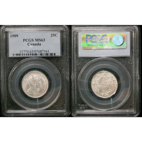 1909 25¢ PCGS MS63.Brilliant with full luster. Excellent strike with clean fields and lovely surfaces.