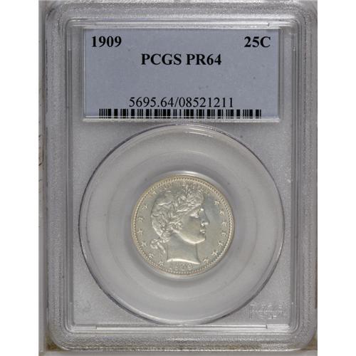 <B>1909<25C> PR64 PCGS.</B></I> A touch of iridescence visits the moderately reflective surfaces of this near-Gem. The devices are well-preserved, though a few hairlines appear in the fields.