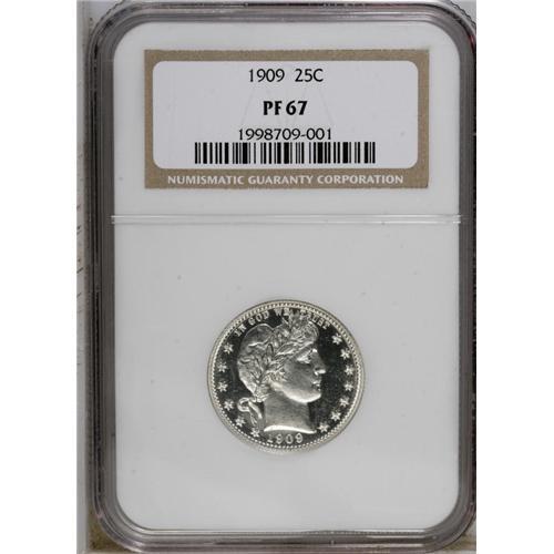 1909 25C PR67 NGC. A brilliant, deeply reflective, and