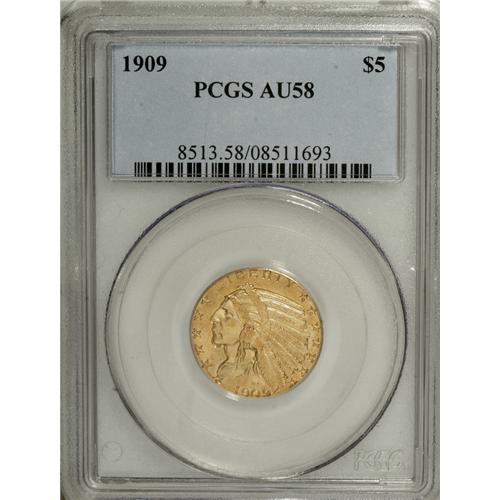 1909 $5 AU58 PCGS. PCGS Population (405/2057). NGC
