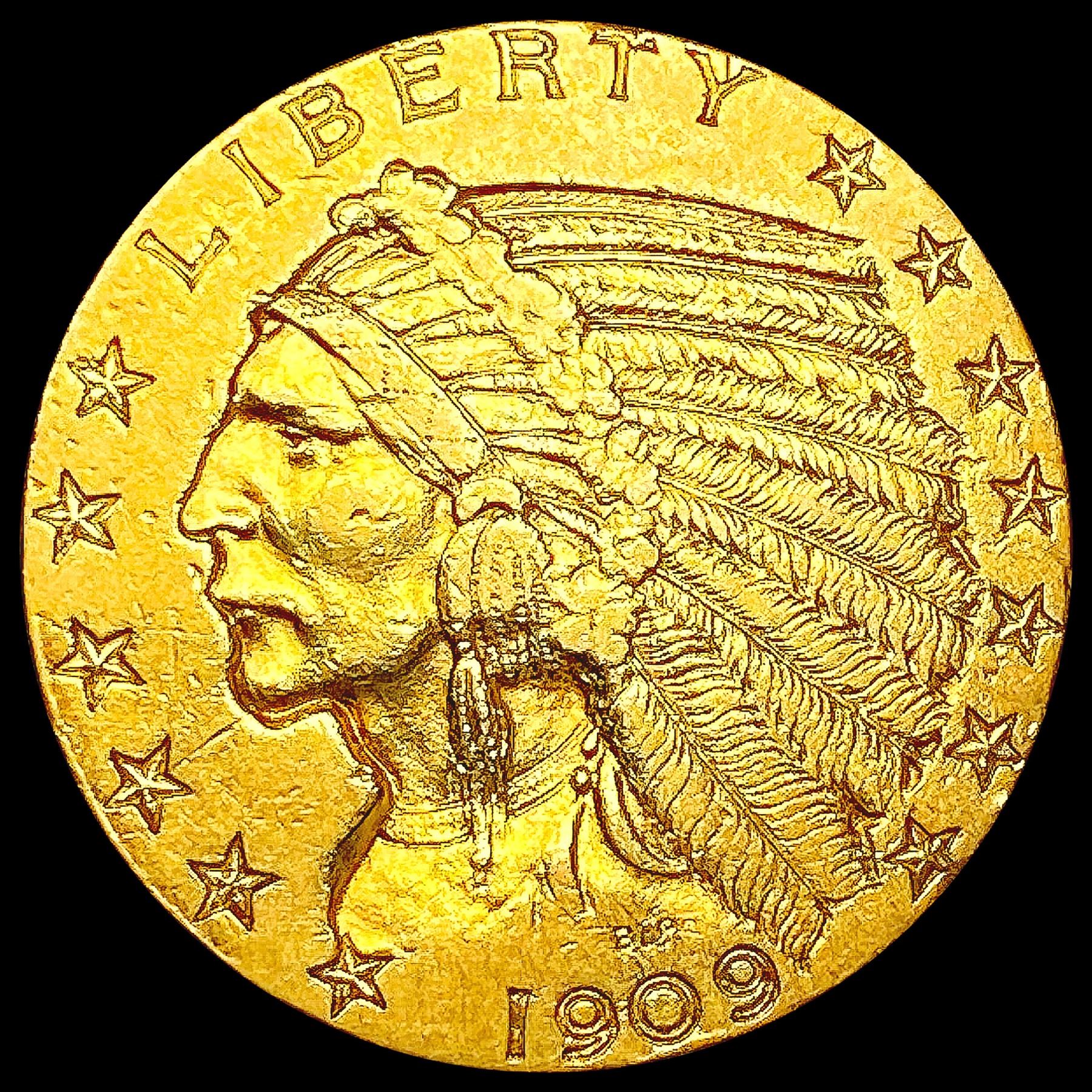 1909 $5 Gold Half Eagle CLOSELY UNCIRCULATED