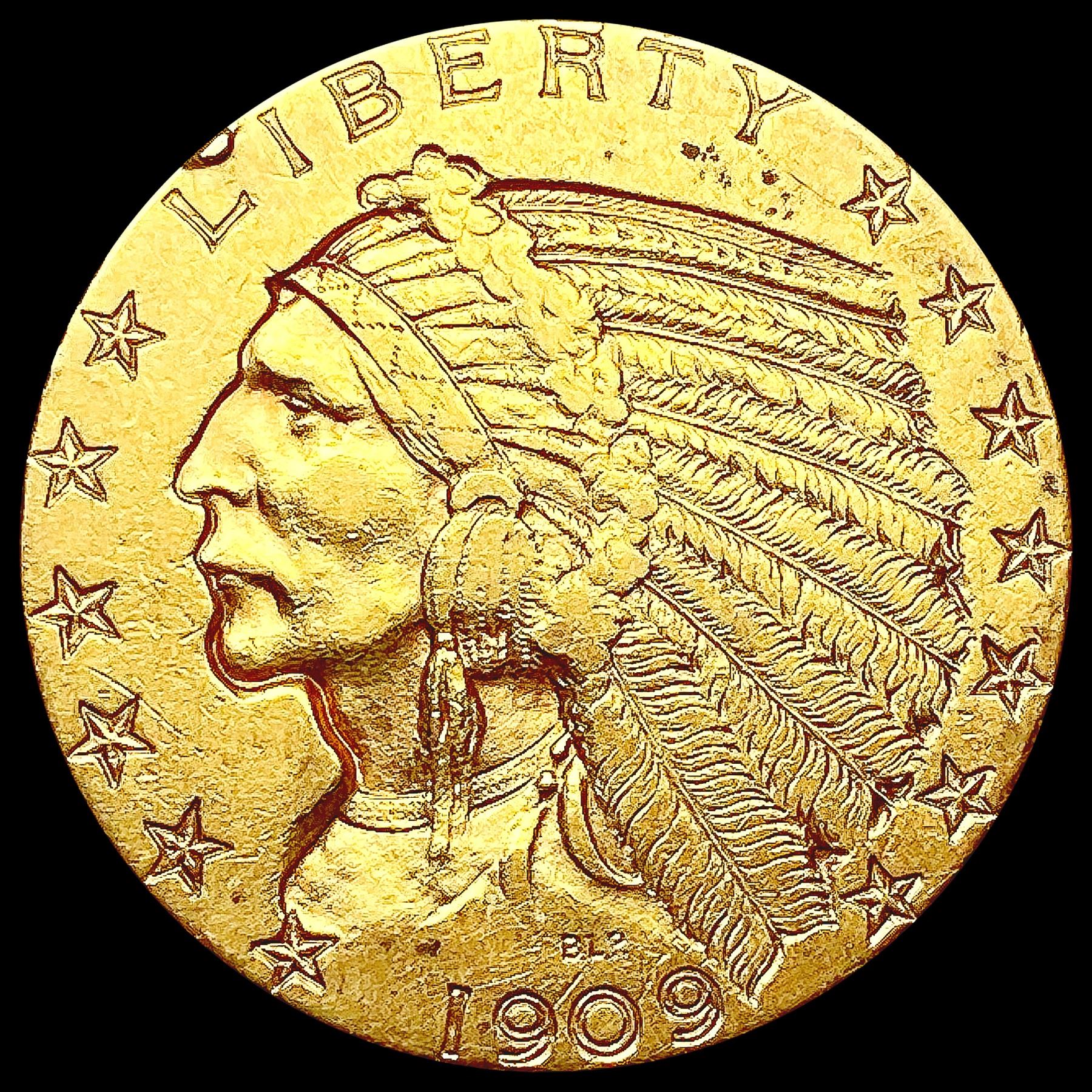 1909 $5 Gold Half Eagle CLOSELY UNCIRCULATED