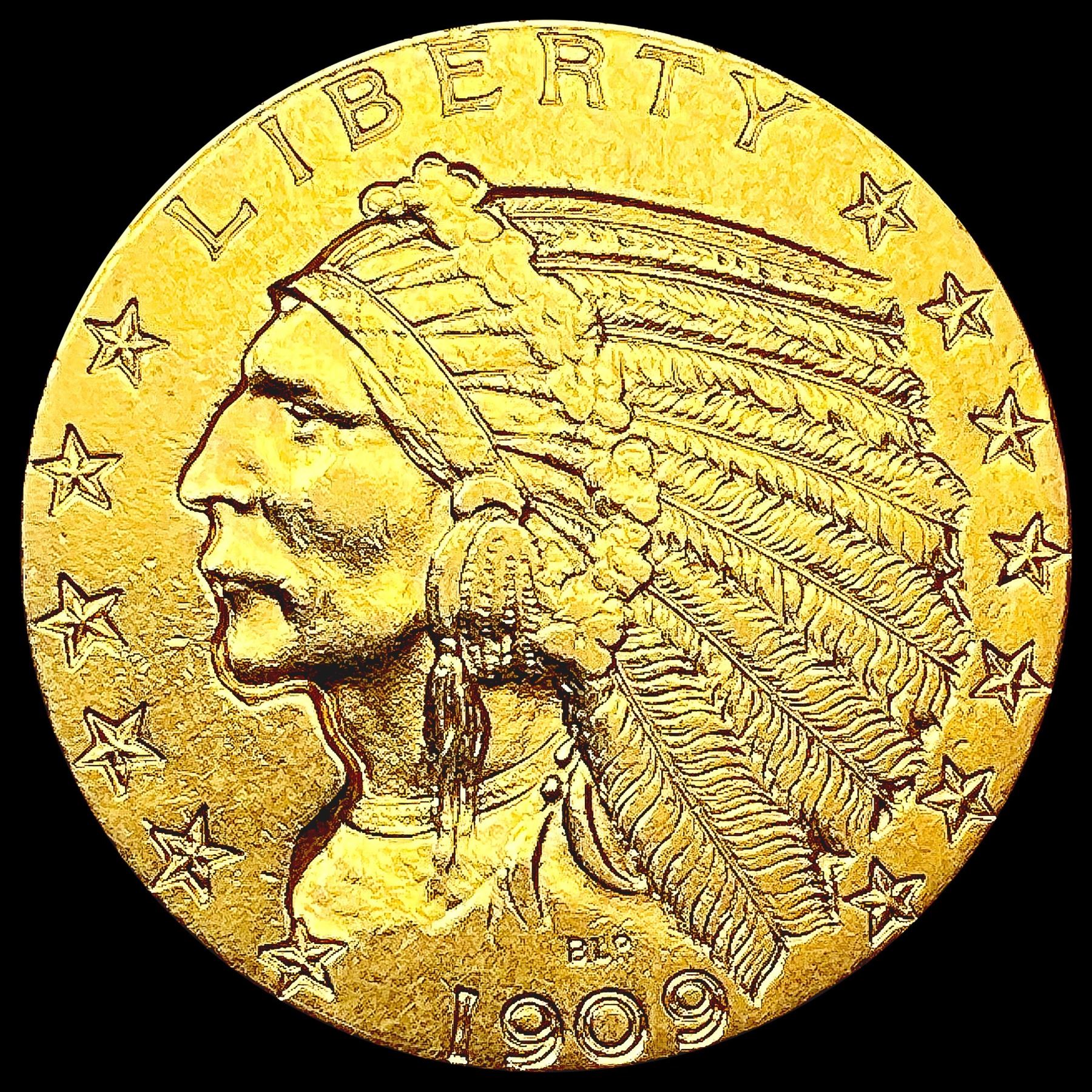 1909 $5 Gold Half Eagle CLOSELY UNCIRCULATED