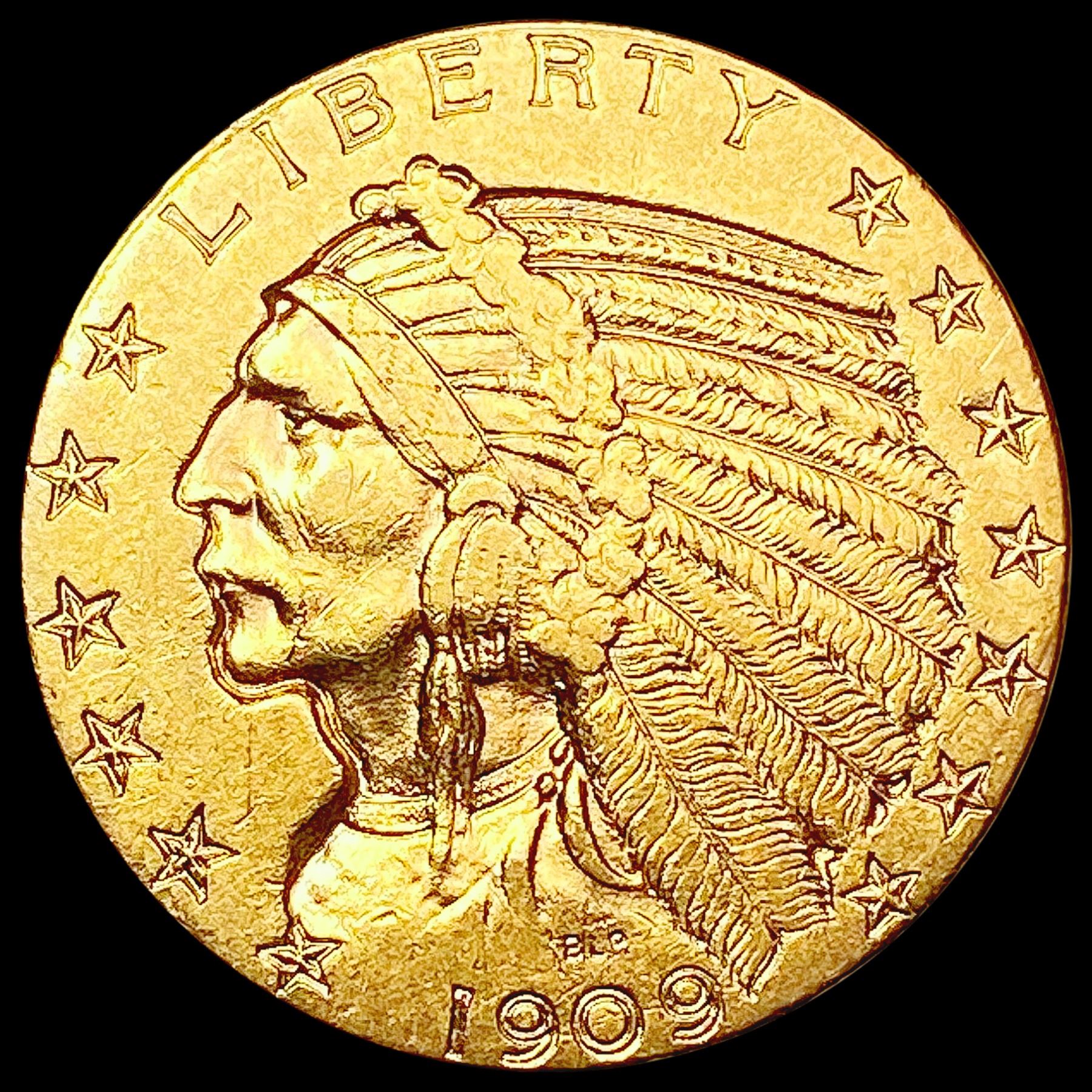 1909 $5 Gold Half Eagle CLOSELY UNCIRCULATED