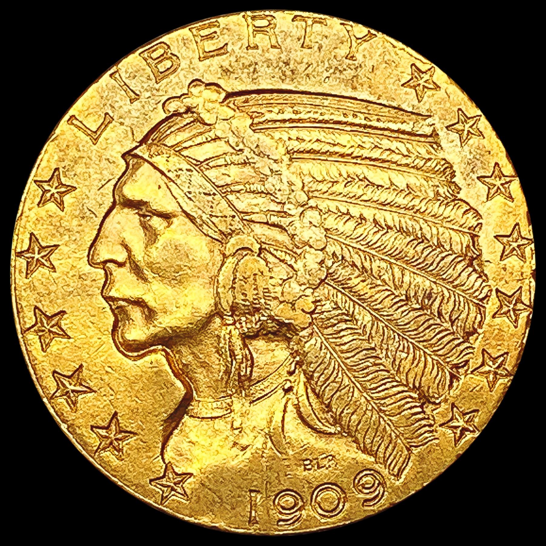 1909 $5 Gold Half Eagle CLOSELY UNCIRCULATED