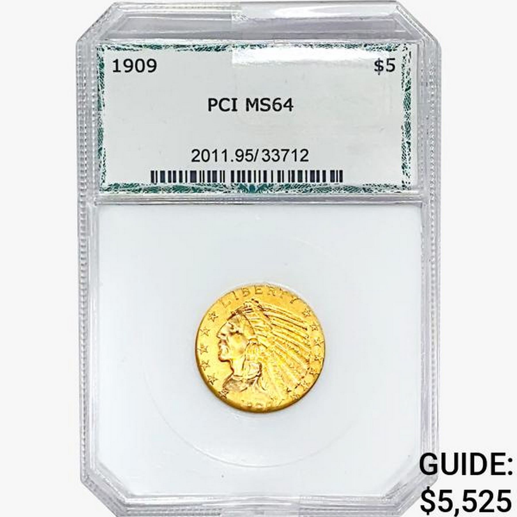 1909 $5 Gold Half Eagle PCI MS64