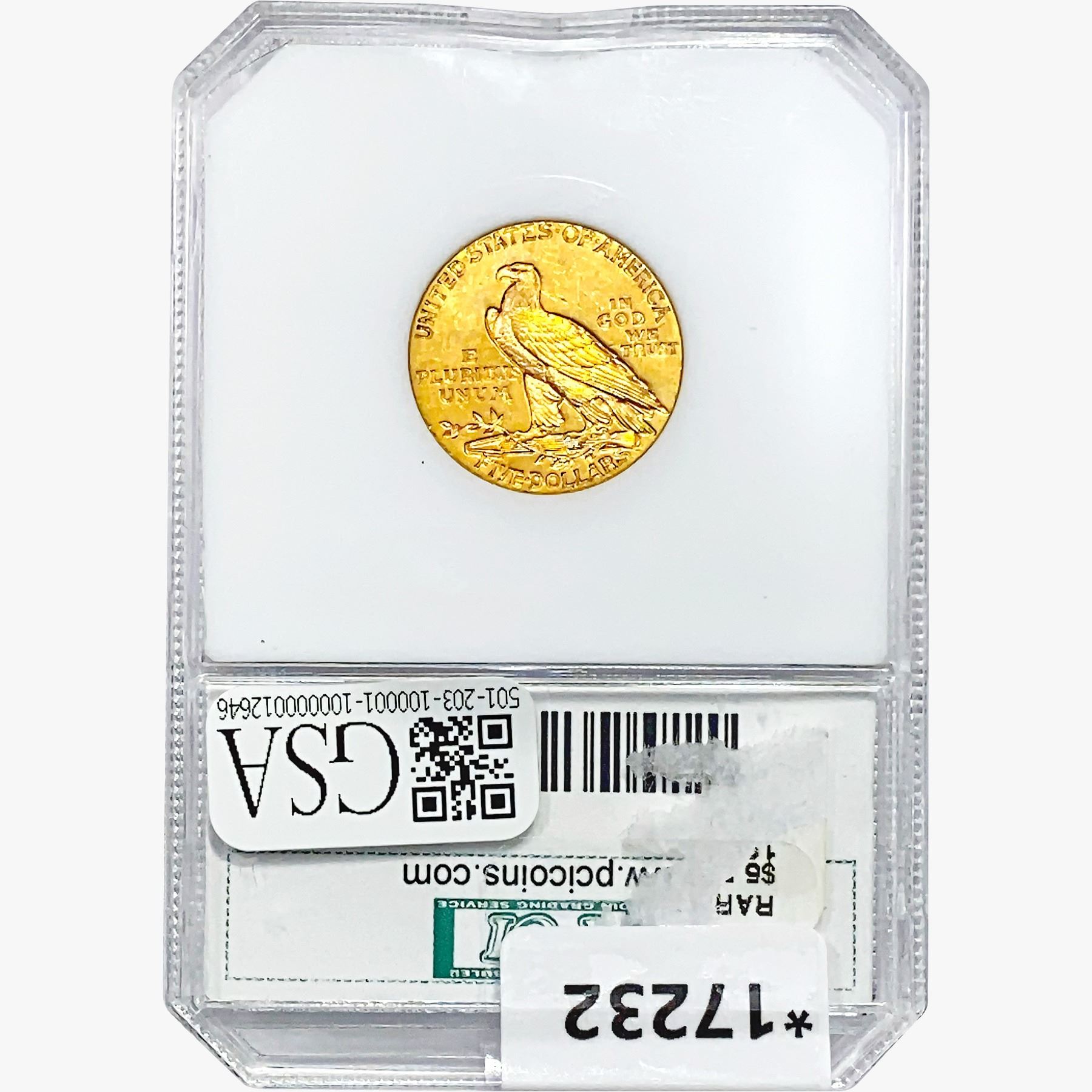 COINS AND CURRENCY LISTED IN GSA’S CATALOG AS GRADED AND ENCAPSULATED BY PCGS, NGC, ANACS, ICG, PCGS CURRENCY, PMG, PCGS BANKNOTE GRADING, CMC OR ANY OTHER THIRD-PARTY GRADING SERVICE ARE LIKEWISE SOLD “AS-IS” EXCEPT AS EXPRESSLY SET FORTH HEREIN. ALL THIRD-PARTY GRADING SERVICE GUARANTEES, INCLUDING AUTHENTICITY, ARE THE SOLE RESPONSIBILITY OF THE THIRD-PARTY GRADING SERVICE AND NOT WARRANTIES OR GUARANTEES OF GSA. BIDDERS SHOULD CONTACT THESE THIRD-PARTY GRADING SERVICES DIRECTLY WITH RESPECT TO ANY CLAIMS OR QUESTIONS THEY MAY HAVE CONCERNING THEIR GUARANTEES AND WARRANTIES. BIDDERS ACKNOWLEDGE AND AGREE THAT AUCTIONEER IS NOT BOUND BY OR LIABLE FOR ANY OPINION OR CERTIFICATION BY ANY THIRD-PARTY GRADING SERVICE. REMOVAL OF A PRODUCT FROM ITS PROTECTIVE CASING OR HOLDER OR ALTERATION OF ANY COIN HOLDER WAIVES ALL RIGHTS CONCERNING THE PRODUCT CONTAINED THEREIN.