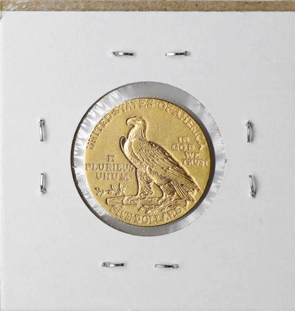 One 1909 $5 Indian Head Half Eagle Gold Coin.