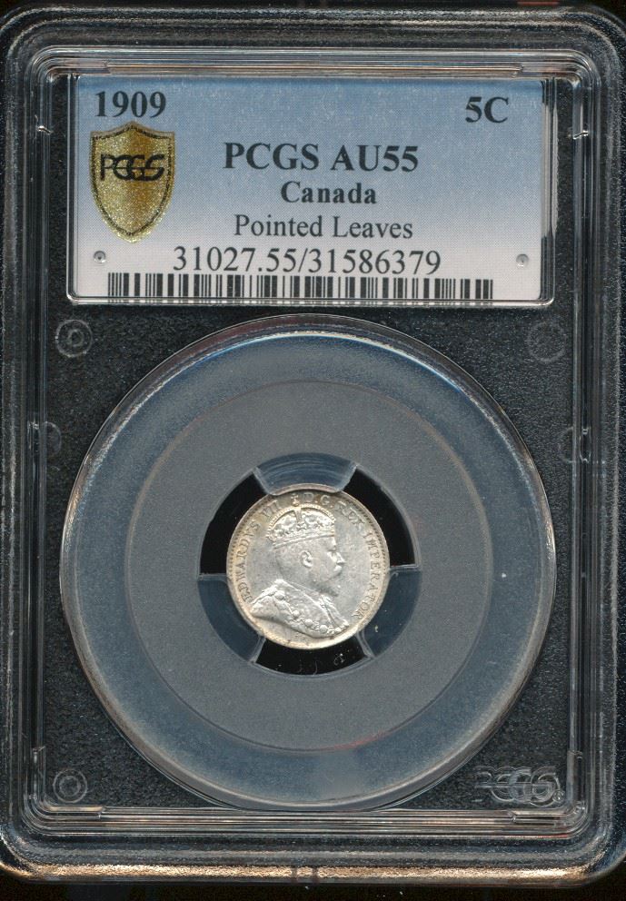 1909 5¢ Ptd Lvs PCGS AU55.