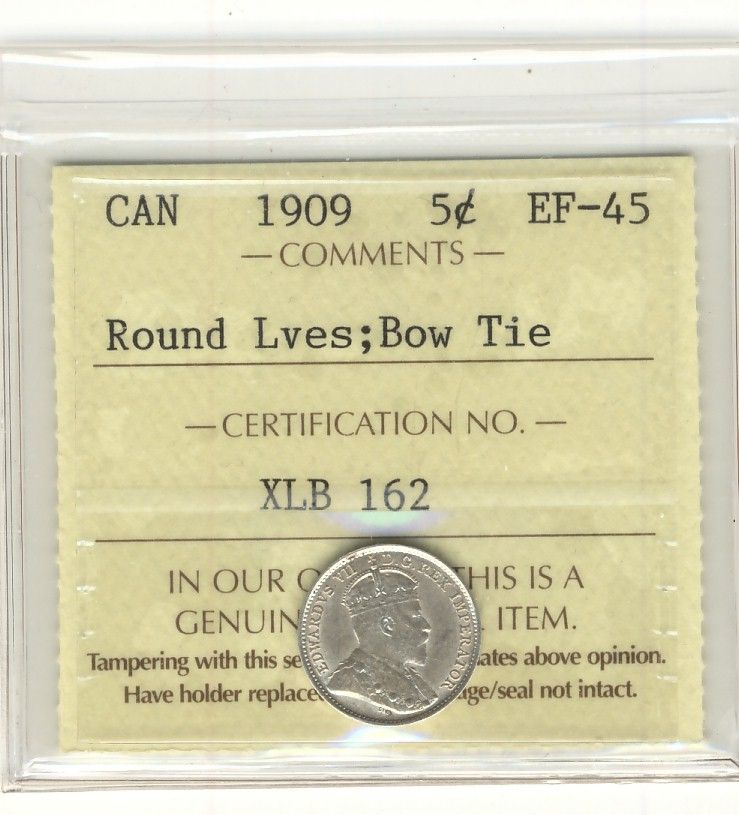 1909 5¢ RL, Bow Tie ICCS EF45.