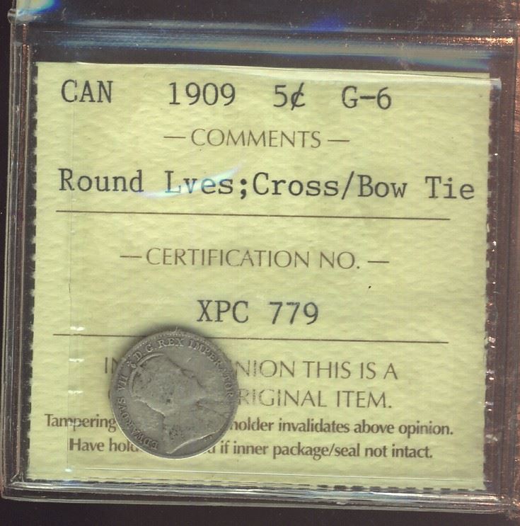 1909 5¢ Round Leaf Cross Bow Tie ICCS G6.