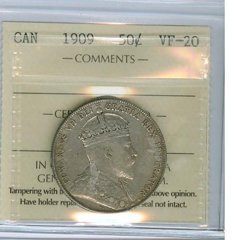 1909 50¢ ICCS VF20 A nice example with problem free.