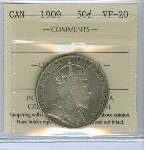 1909 50¢ ICCS VF20. Well struck attractive issue.