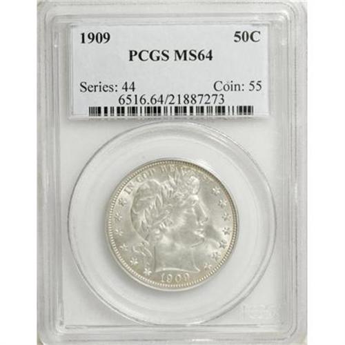 <B>1909 50C MS64 PCGS.</B></I> Whispers of barely discernible light tan color visit the borders of this radiantly lustrous near-Gem. Well preserved, and sharply struck, save for the usual softness in the upper right corner of the shield and the arrow feathers.<BR><BR><B>Coin Engraver:</B> Charles E. Barber<BR><BR><b>Shipping:</b> Coins & Currency (<a target="_blank" href="http://www.heritageauctions.com/common/shipping.php">view shipping information</a>)