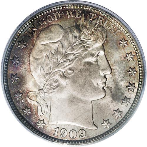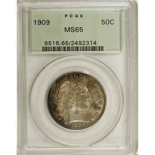 1909 50C MS65 PCGS. The obverse shows smoke-gray, peac