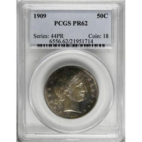 <B>1909 50C PR62 PCGS.</B></I> Fully struck with deep layers of tobacco-brown, rose, and gray coloration on each side. Minimal hairlines are noted in the fields, and bothersome contact marks are nonexistent. A low mintage, late date proof issue of just 650 pieces. <BR><BR><B>Coin Engraver:</B> Charles E. Barber<BR><BR><b>Shipping:</b> Coins & Currency (<a target="_blank" href="http://www.heritageauctions.com/common/shipping.php">view shipping information</a>)