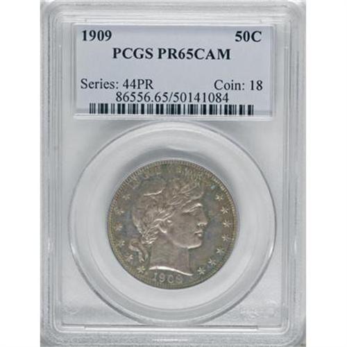 <B>1909 50C PR65 Cameo PCGS. CAC.</B></I> The immense eye appeal of this Gem specimen is derived from significant field-to-device contrast and irregular splashes of gray-lilac and sea-green iridescence in the areas surrounding the central features. All of the design elements are well brought up. Some minor obverse handling marks are consistent with the grade. Population: 7 in 65 Cameo, 20 finer (11/07).<BR><I>From The Kallenberg #1 PCGS Registry Set Of Proof Half Dollars.</B></I><BR><BR><b>Shipping:</b> Coins & Currency (<a target="_blank" href="http://www.heritageauctions.com/common/shipping.php">view shipping information</a>)