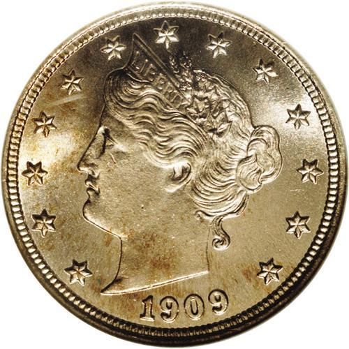 <B>1909<5C> MS66 NGC.</B></I> Crisply detailed throughout, an uncommon feature for a business strike Liberty nickel of any date. The surfaces are expectantly smooth for the MS66 designation, and the luster is full with swirling cartwheel effects beneath hints of subtle peach-colored overtones. Census: 9 in 66, 0 finer (4/06).