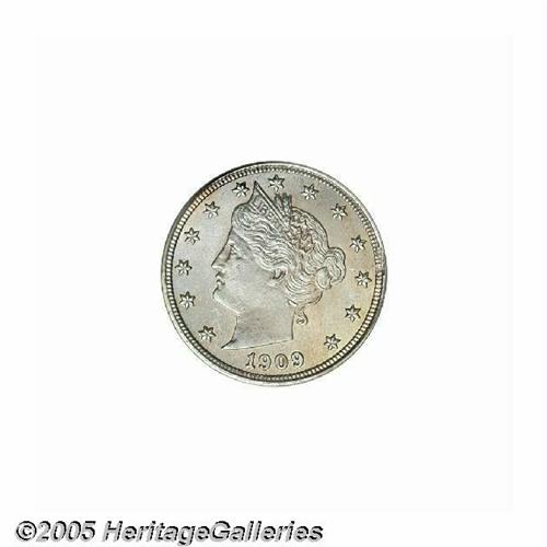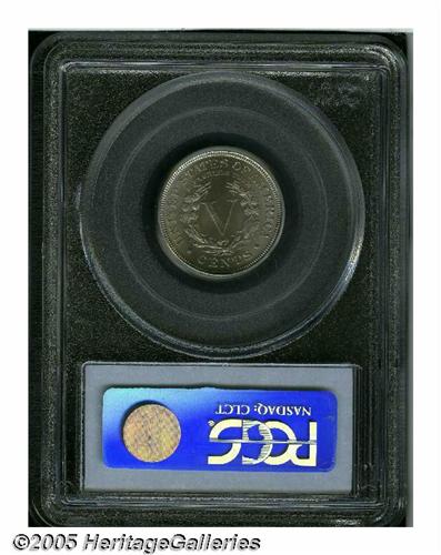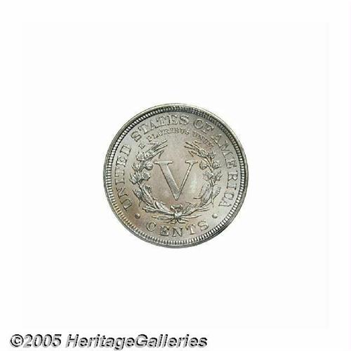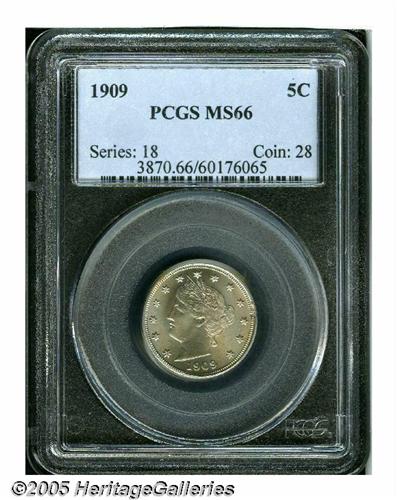 <B>1909<5C> MS66 PCGS.</B></I> A bold striking with beautiful apricot and lilac highlights. Just a few inconsequential luster grazes on the obverse keep this first rate 1909 Nickel from an otherwise deserved Superb rating. Population: 14 in 66, 0 finer (6/05).