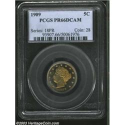 <TABLE cellSpacing=0 cellPadding=0 width="100%" bgColor=#000000 border=0><TBODY><TR><TD width="100%"><TABLE cellSpacing=1 cellPadding=3 width="100%" border=0><TBODY><TR><TD width="100%" bgColor=#79735c><FONT face=arial color=#ffffff size=3><B>Description</B> </FONT></TD></TR><TR><TD width="100%" bgColor=#ffffff><FONT face=arial size=2><B>1909 5C PR66 Deep Cameo PCGS.</B></I> Golden toned and deeply reflective, the devices are heavily frosted yielding a pronounced contrast on each side--which is all the more impressive given the presence of the toning. The 1909 is a high production issue, and in our experience it is also one of the best produced and best preserved proof dates in the Liberty nickel series. A superior type coin with very pleasing overall surfaces. Population: 3 in 66, 0 finer (8/03). </FONT></TD></TR></TBODY></TABLE></TD></TR></TBODY></TABLE><BR><A name=PricesRealized></A><TABLE cellSpacing=0 cellPadding=0 width="100%" bgColor=#000000 border=0><TBODY><TR><TD width="100%"><TABLE cellSpacing=1 cellPadding=3 width="100%" border=0><TBODY><TR><TD width="100%" bgColor=#79735c><A name=PR><FONT face=arial color=#ffffff size=3><B>Previous Prices from Heritage Auctions</B> </FONT></A></TD></TR><TR><TD bgColor=#f6f6ed><TABLE cellSpacing=0 cellPadding=0 width="100%" border=1><TBODY><TR><TD align=middle width="33%"><B>Date</B></TD><TD align=middle width="33%"><B>Service</B></TD><TD align=middle width="33%"><B>Price</B></TD></TR><TR bgColor=whitesmoke><TD width="33%"><B>01/11/2003</B></TD><TD width="33%">PCGS</TD><TD width="33%">$2,530.00</TD></TR></TBODY></TABLE></TD></TR><TR><TD bgColor=#ffffff><FONT face=arial size=1 ?>PLEASE NOTE: All prices realized reflect the final hammer price PLUS the buyer's premium in auctions that charge a buyer's premium. Each item has a notation at the top of the listing indicating whether that lot included a buyer's premium. Example: A item that sells with a final hammer price of $100 and a 20% buyer's premium will display with a price realized of $120. All information listed is intended to be as accurate as possible, but errors are possible. Please use this guide carefully and inform us of any inaccuracies. </FONT></TD></TR></TBODY></TABLE></TD></TR></TBODY></TABLE><BR><TABLE cellSpacing=0 cellPadding=0 width="100%" bgColor=#000000 border=0><TBODY><TR><TD width="100%"><TABLE cellSpacing=1 cellPadding=3 width="100%" border=0><TBODY><TR><TD width="100%" bgColor=#79735c colSpan=6><FONT face=arial color=#ffffff size=3><B>Price Guide*</B> </FONT></TD></TR><TR bgColor=#f6f6ed><TD align=middle><B>Grade</B> </TD><TD align=middle><B>Coin World<BR>(Trends)</B> </TD><TD align=middle><B>Numismedia<BR>Retail</B> </TD><TD align=middle><B>Numismedia<BR>Wholesale</B> </TD><TD align=middle><B>Coin<BR>Universe</B> </TD><TD align=middle><B>Heritage<BR>Value Index</B> </TD></TR><TR bgColor=#ffffff><TD align=middle>65</TD><TD align=right>---</TD><TD align=right>---</TD><TD align=right>---</TD><TD align=right>---</TD><TD align=right>$315.00</TD></TR><TR style="FONT-WEIGHT: bold" bgColor=#cccfdd><TD align=middle>66</TD><TD align=right>---</TD><TD align=right>---</TD><TD align=right>---</TD><TD align=right>---</TD><TD align=right>---</TD></TR><TR bgColor=#ffffff><TD align=middle>67</TD><TD align=right>---</TD><TD align=right>---</TD><TD align=right>---</TD><TD align=right>---</TD><TD align=right>---</TD></TR><TR bgColor=#ffffff><TD colSpan=6><FONT size=1>*All information listed is intended to be as accurate as possible, but errors are possible. No item may be returned or refused based on this information which is provided as a service to our customers. You should contact each pricing source directly to determine the accuracy of this information. </FONT></TD></TR></TBODY></TABLE></TD></TR></TBODY></TABLE><BR><TABLE cellSpacing=0 cellPadding=0 width="100%" bgColor=#000000 border=0><TBODY><TR><TD width="100%"><TABLE cellSpacing=1 cellPadding=3 width="100%" border=0><TBODY><TR><TD width="100%" bgColor=#79735c><FONT face=arial color=#ffffff size=3><B>Population Guide</B> </FONT></TD></TR><TR bgColor=#ffffff><TD align=middle><!-- Begin Output of Population Grid--><TABLE cellSpacing=0 cellPadding=0 width="100%" border=0><TBODY><TR><TD vAlign=center><TABLE cellSpacing=0 width="100%" border=1 cellsadding="3"><TBODY><TR><TD vAlign=center><TABLE cellSpacing=0 cellPadding=3 width="100%" border=1><TBODY><TR><TD vAlign=center align=middle bgColor=#f0f1e8 colSpan=2 <CENTER><FONT face=Arial size=2><B>PCGS Pop </B></FONT><CENTER></CENTER></TD><TD vAlign=center align=middle bgColor=#f0f1e8 colSpan=2><CENTER><FONT face=Arial size=2><B>NGC Pop</B></CENTER></FONT></TD></TR><TR><TD vAlign=center><FONT face=Arial size=2>(66)</FONT> </TD><TD vAlign=center align=right><FONT face=Arial size=2>3</FONT> </TD><TD vAlign=center><FONT face=Arial size=2>(66)</FONT> </TD><TD vAlign=center align=right><FONT face=Arial size=2>0</FONT> </TD></TR><TR><TD vAlign=center><FONT face=Arial size=2>(>66)</FONT> </TD><TD vAlign=center align=right><FONT face=Arial size=2>0</FONT> </TD><TD vAlign=center><FONT face=Arial size=2>(>66)</FONT> </TD><TD vAlign=center align=right><FONT face=Arial size=2>0</FONT> </TD></TR></TBODY></TABLE></TD></TR></TBODY></TABLE></TD></TR></TBODY></TABLE><!-- End Output of Population Grid--> Important notice: Heritage usually auctions material at the rate of 200-250 lots per hour. On some occasions eBay Live bid software or the Internet may not be able to keep up with the pace of the auction. We recommend placing a realistic absentee bid now as insurance to avoid disappointment. Occasionally the auctioneer may eliminate or reject an eBay Live bid, and the auctioneer may also reopen a lot after the close of the eBay live bidding (usually because we missed an audience bid), and may reject your bid even if it shows you as the winning bidder. By bidding via eBay Live, you agree that Heritage may award the lot to another bidder at its sole discretion under the circumstances described above or any othe