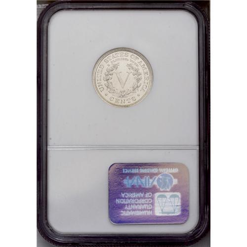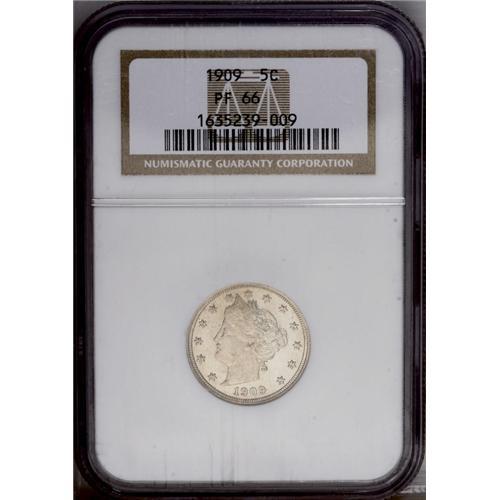 <B>1909<5C> PR66 NGC.</B></I> Assertively struck and only lightly toned in apricot hues. The wreath and portrait are gently frosted, but not sufficiently to command a Cameo designation.