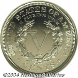 <table><tr><td><table><tr><td>1909 5C PR68 S Cameo NGC. The frosty devices and the darkly mirrored fields offer cameo contrast is unusually strong for the type. The untoned surfaces are essentially pristine, although a tiny mint-made planchet flaw resides beside the second star. Well struck aside from a small area of softness on the left ear of corn and on the curl below the B in LIBERTY. Those specialists assembling date or type sets of exceptional cameo proofs need look no further. The single finest certified by NGC, although as of (3/04), another four examples have been graded as PR68 without the star designation. <BR><BR><B>Important notice:</B> Heritage usually auctions material at the rate of 200-250 lots per hour. On some occasions eBay Live bid software or the Internet may not be able to keep up with the pace of the auction. We recommend placing a realistic absentee bid now as insurance to avoid disappointment. Occasionally the auctioneer may eliminate or reject an eBay Live bid, and the auctioneer may also reopen a lot after the close of the eBay live bidding (usually because we missed an audience bid), and may reject your bid even if it shows you as the winning bidder. By bidding via eBay Live, you agree that Heritage may award the lot to another bidder at its sole discretion under the circumstances described above or any other reasonable circumstances. Since eBay bids are not shown to us until we open the lot on the floor, we treat those bids just like floor bids. In most cases the floor responds before the eBay bid is presented to us, due to Internet lag time, so for consistency we have made it a policy that floor bids are always considered first over tie eBay live bids. Also please note that all Heritage lots purchased through eBay Live carry a 20% Buyer's Premium. Please make sure you read the Terms and Conditions before you bid. <BR><BR><B>IMPORTANT ANNOUNCEMENT ABOUT RESERVES:</B> Heritage now divulges all reserves on its web site 7 days before every auction. If you want to know whether the reserve on this lot has been met, and if not, what the reserve amount is, please visit this lot page on the HeritageCoin.com web site, or email: bid@HeritageGalleries.com </span></font></td></tr></table></td></tr></table>