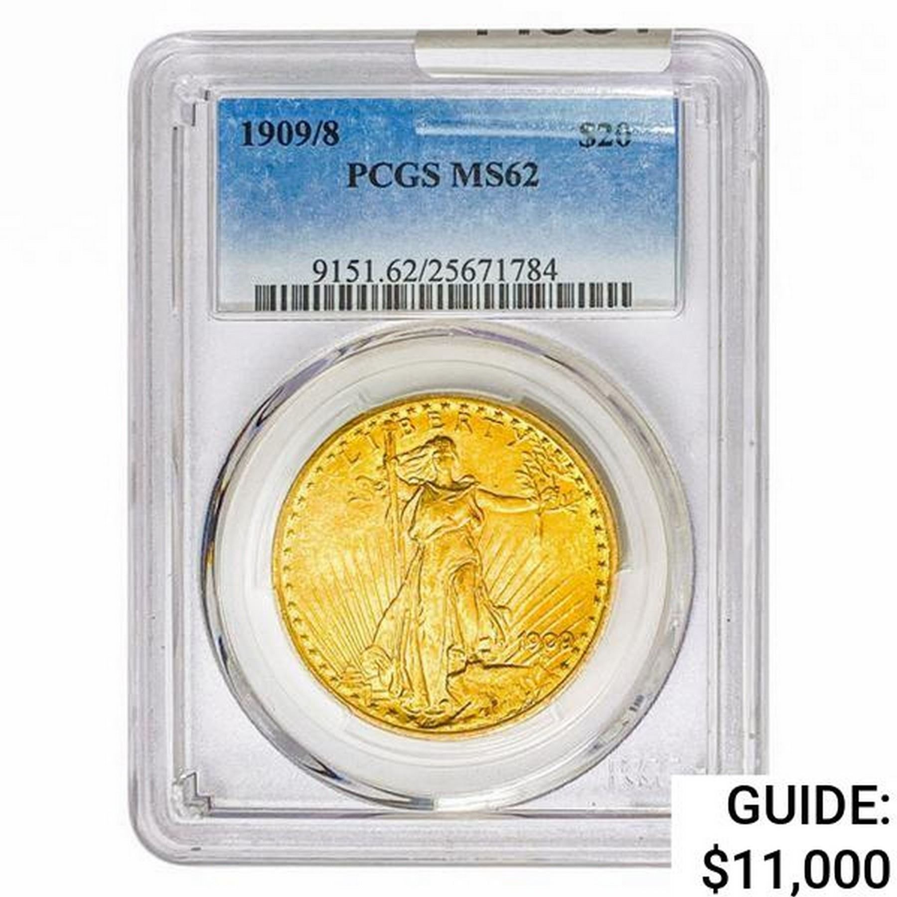 1909/ 8 $20 Gold Double Eagle PCGS MS62
