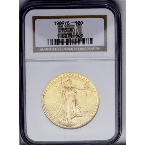 1909/8 $20 MS61 NGC. A former rarity in Mint State, th 1909/8[$20] MS61 NGC.