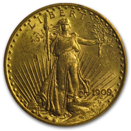 1909/8 $20 St. Gaudens Gold Double Eagle - Overdate - M **|**|** Year: 1909 ; Mint Mark: MS-61 ; Denomination: 50 ; MSRP: $4700