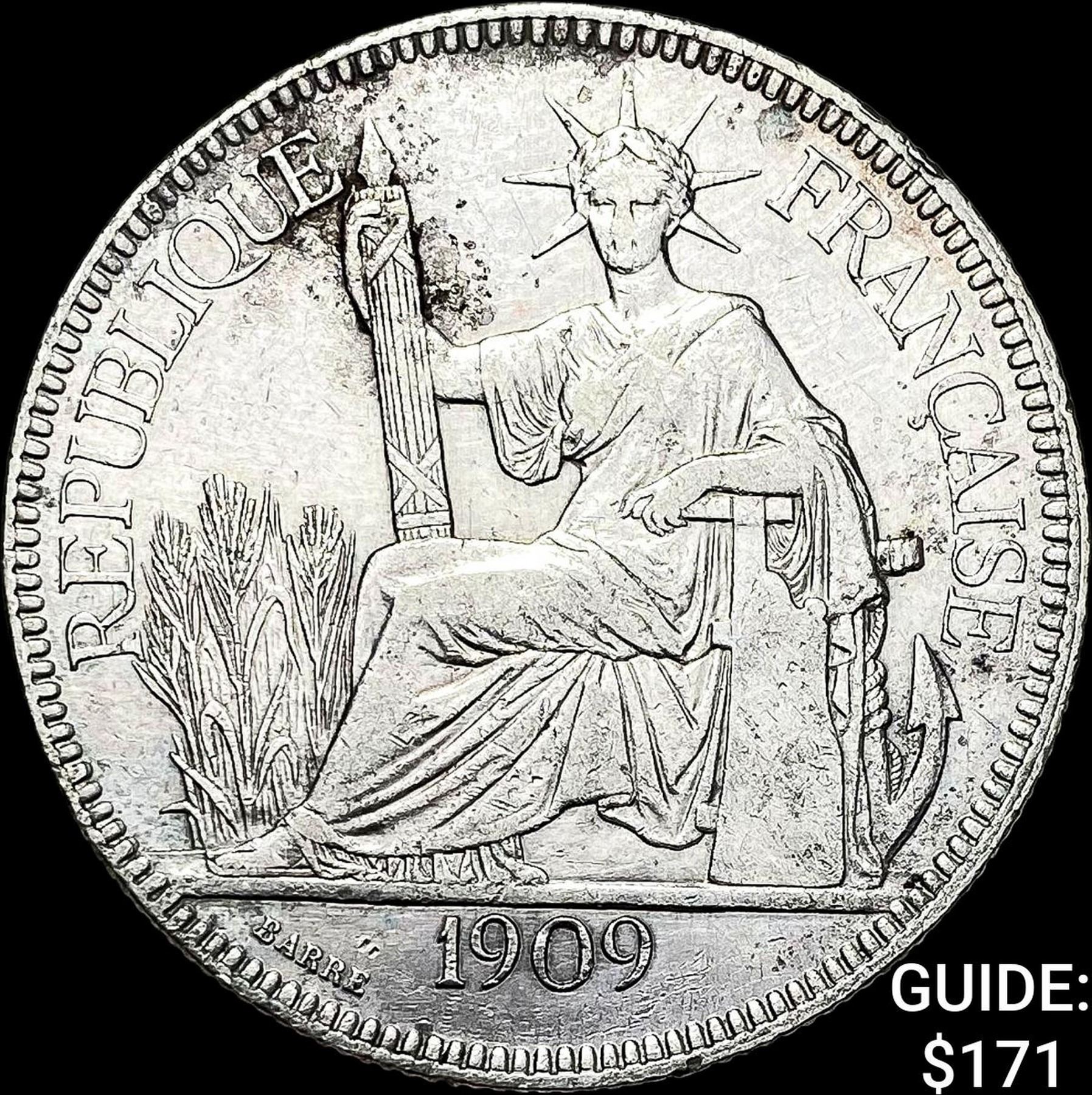 1909-A French Indo-China Silver Piastre CLOSELY UNCIRCULATED