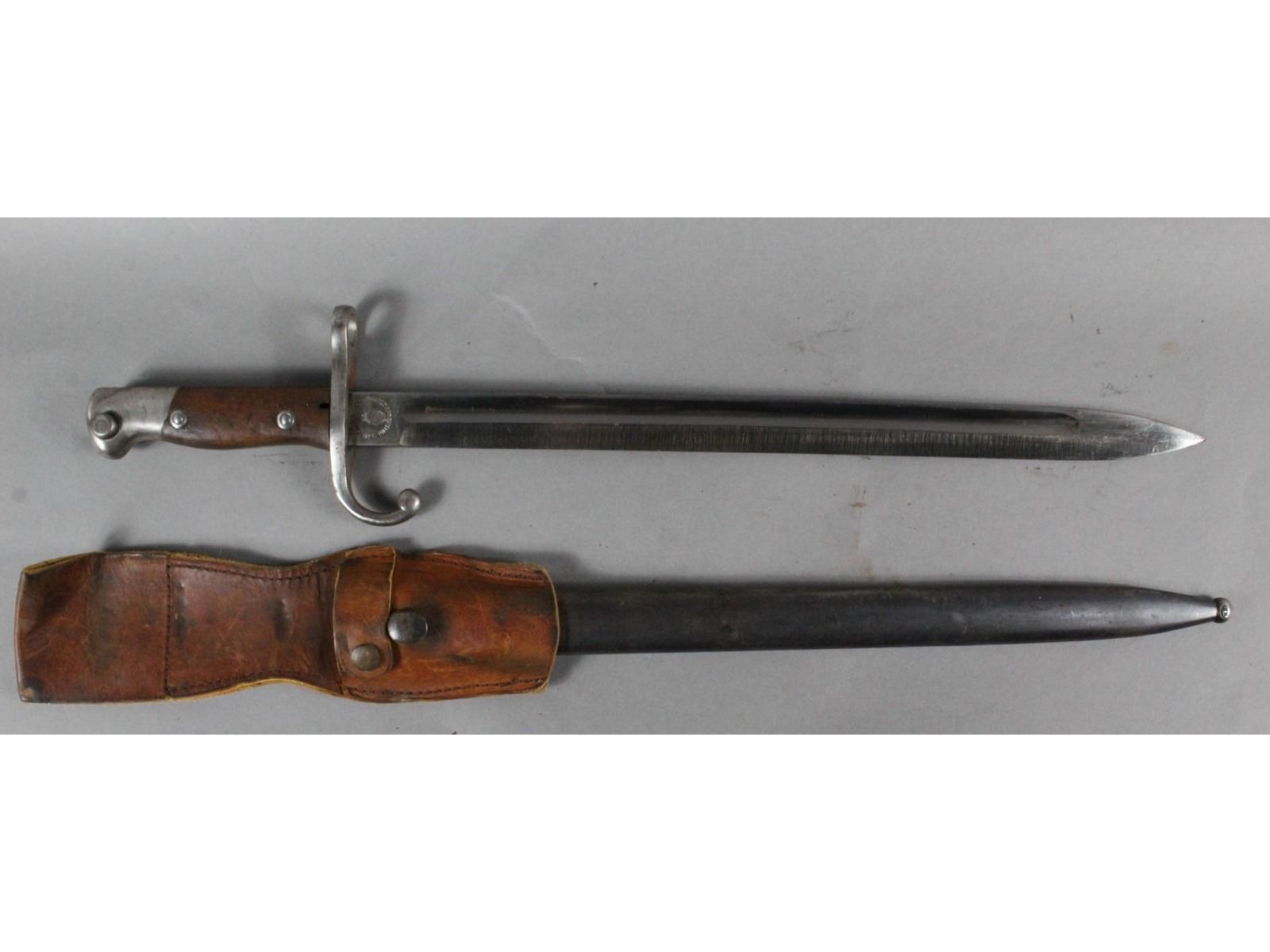 Blade measures 15.75", overall 21.25". Full crest on beautiful blade. With matching serial number scabbard H8804. Overall very nice condition with some rust on scabbard, back of cross, pommel wear laying on frog. Light brown frog with snap in very good condition. Weyersberg made.
