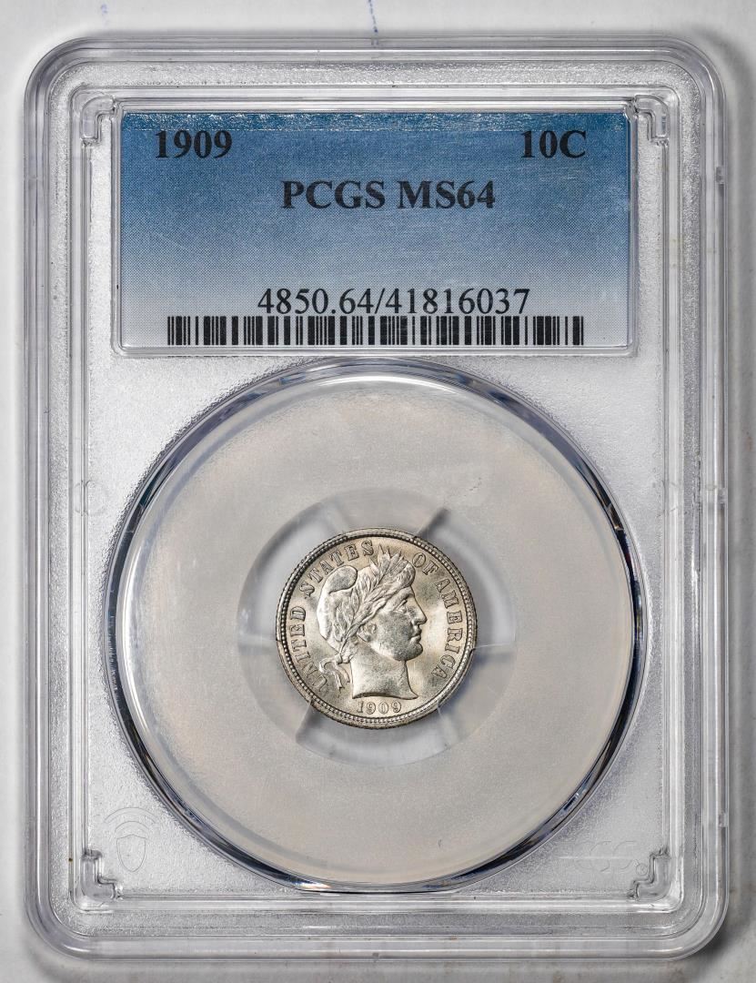 One 1909 Barber Dime Coin PCGS MS64. PCGS Graded.