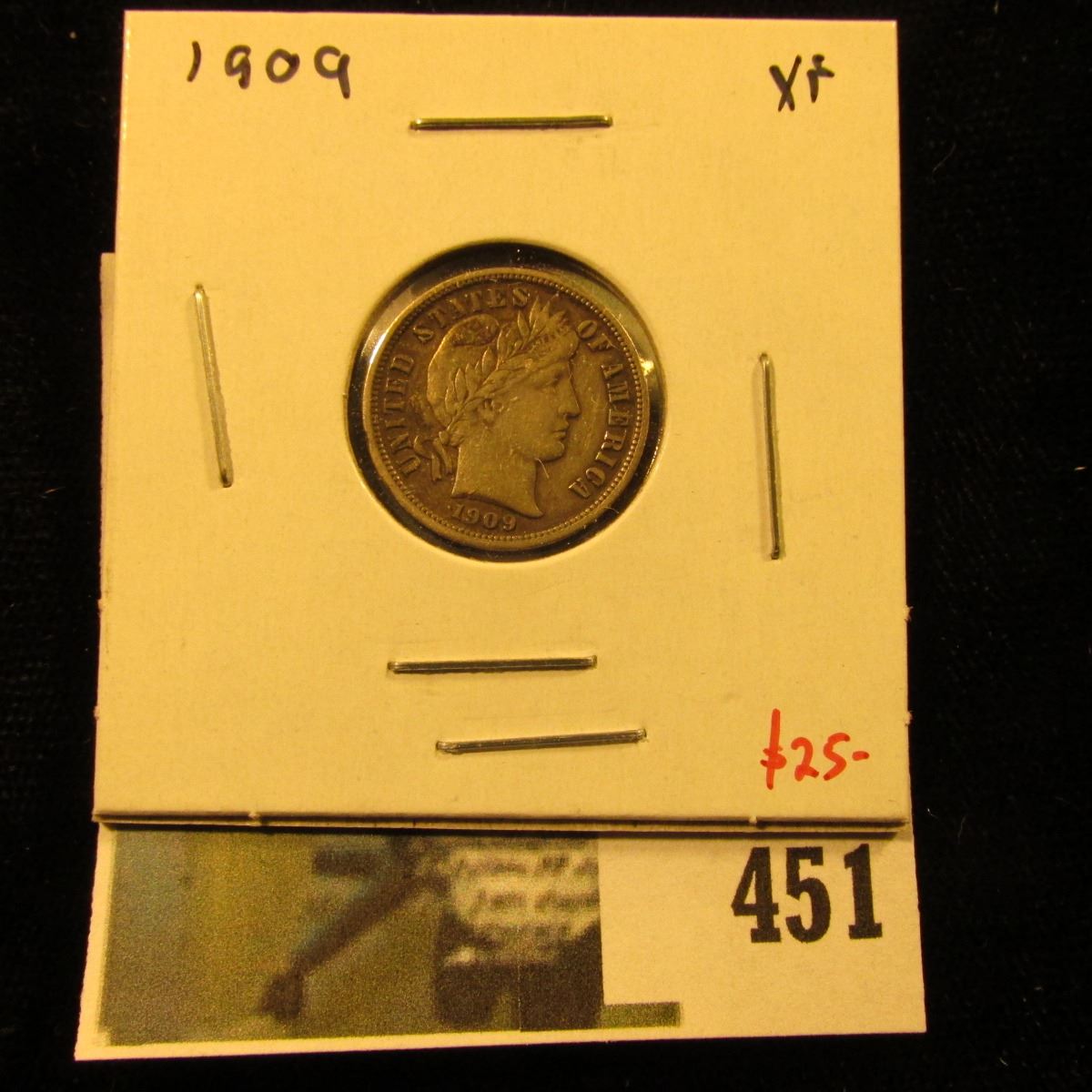 1909 Barber Dime, XF, value $25