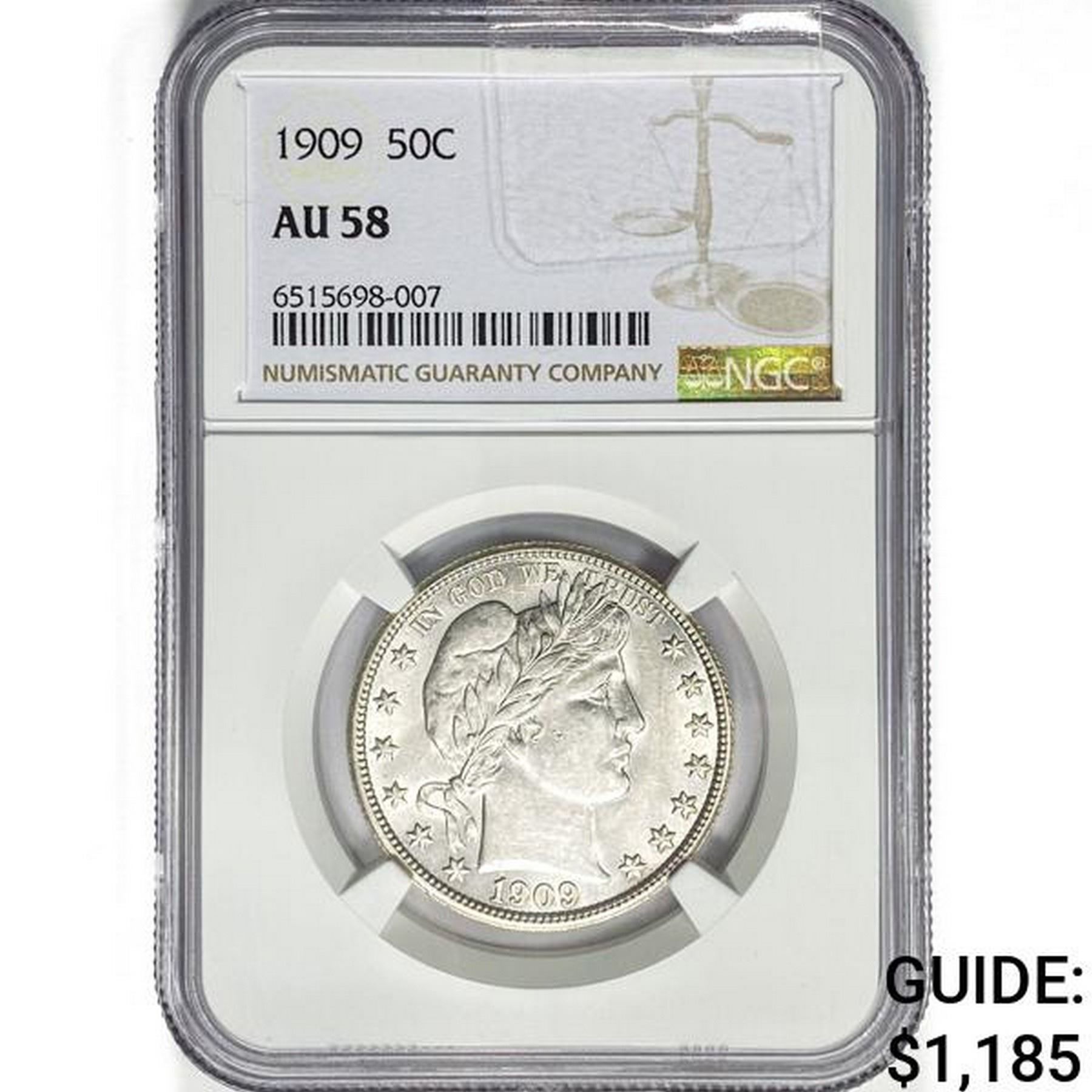 1909 Barber Half Dollar NGC AU58