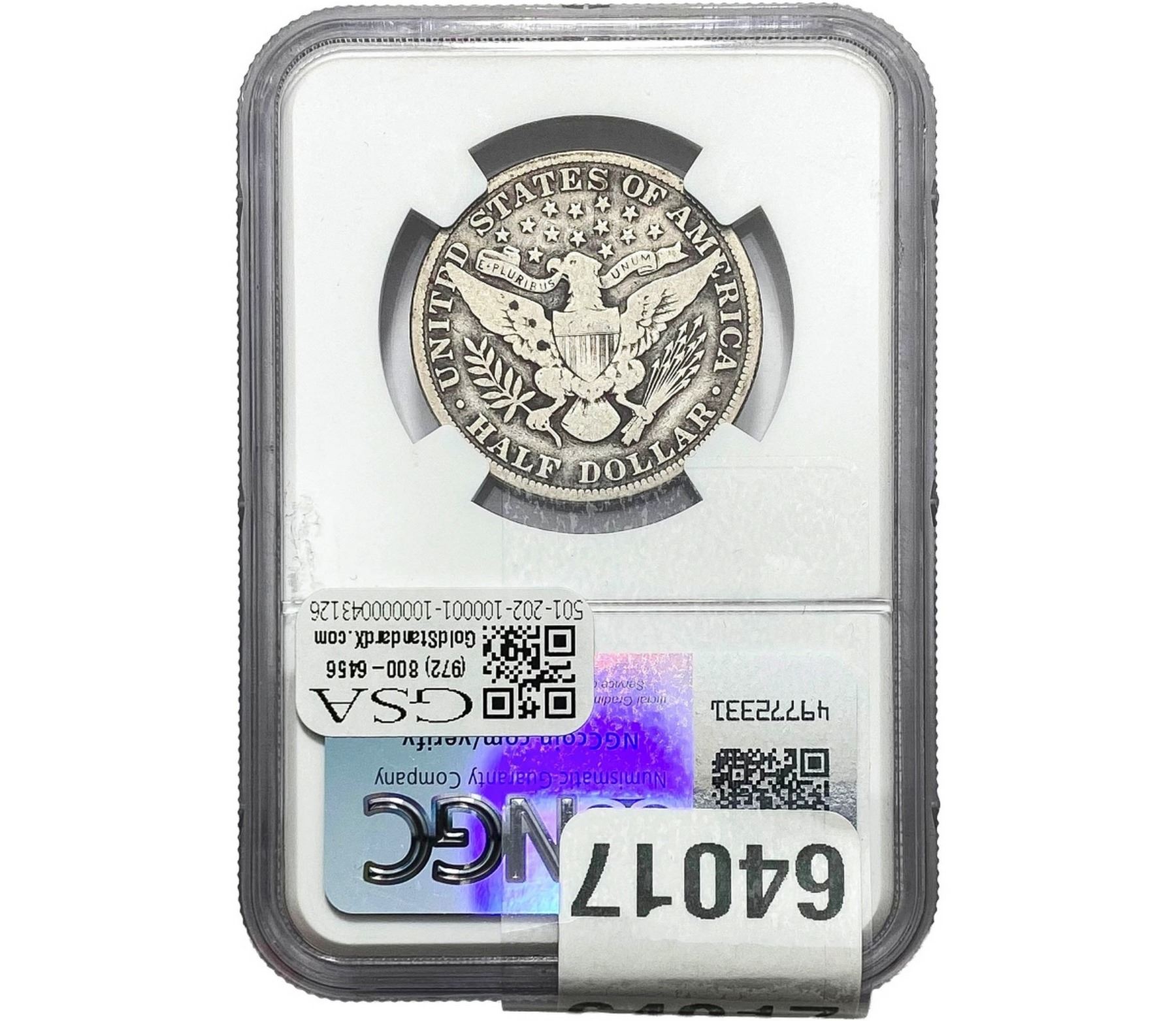 e. Coins sold referencing a third-party grading service are sold “AS IS” without any express or implied warranty, except for a guarantee by GSA that they are genuine. Removal or alteration of the holder, voids all of Bidder’s claims concerning that Product. Certain warranties may be available from the grading services and Bidders are referred to them for further details: Numismatic Guaranty Corporation (NGC), PO Box 4776, Sarasota, FL 34230, www.ngccoin.com/services/writtenguarantee.asp; Professional Coin Grading Services (PCGS), PO Box 9458, Newport Beach, CA 92658, www.pcgs.com/guarantee.html; ANACS, 6555 S. Kenton St., Ste. 303, Englewood, CO 80111; and Independent Coin Grading Co. (ICG), 7901 East Bellview, Ave., Suite 50, Englewood, CO 80111.