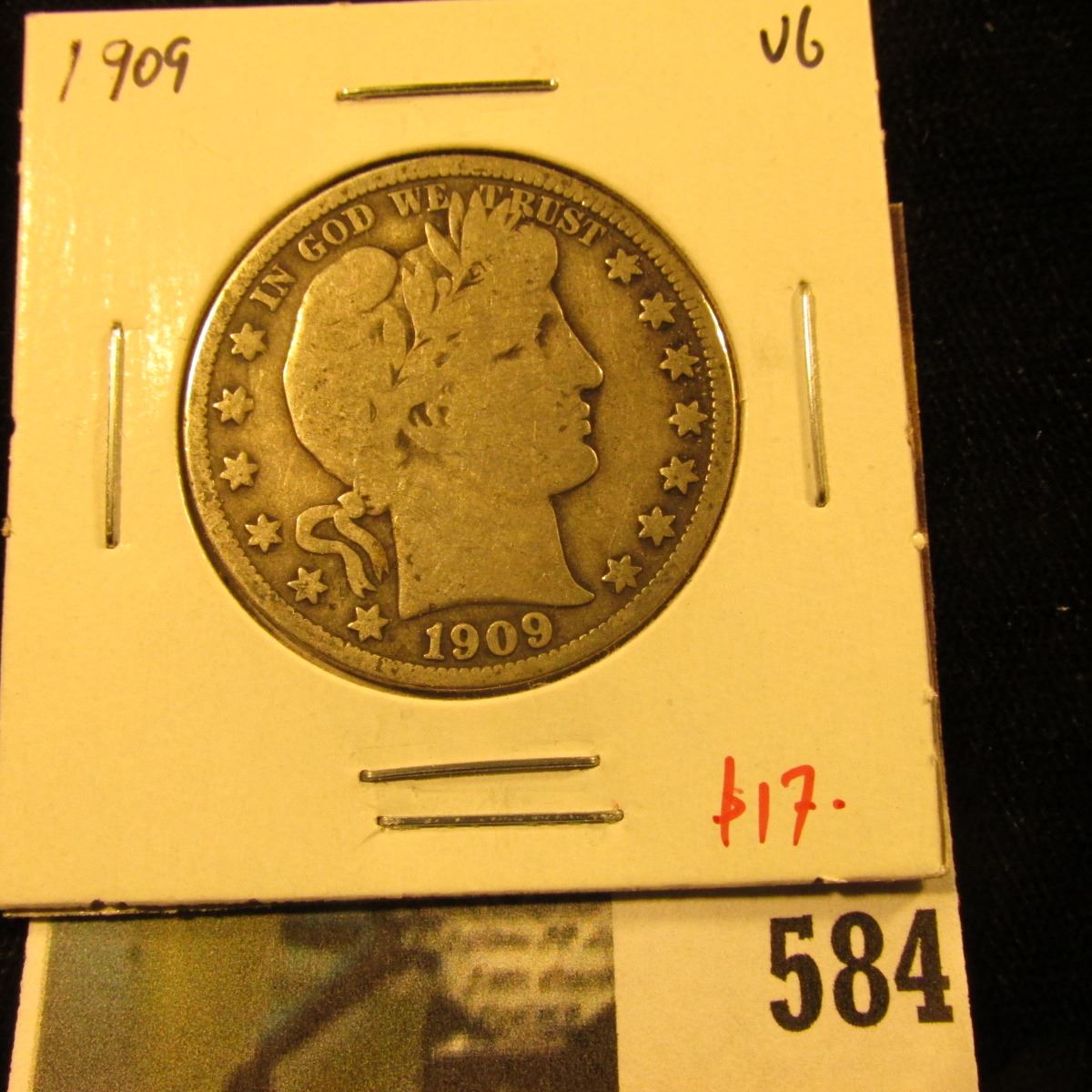 1909 Barber Half Dollar, VG, value $17