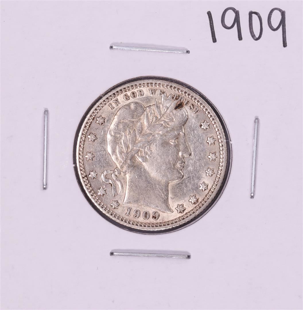 One 1909 Barber Quarter Coin.