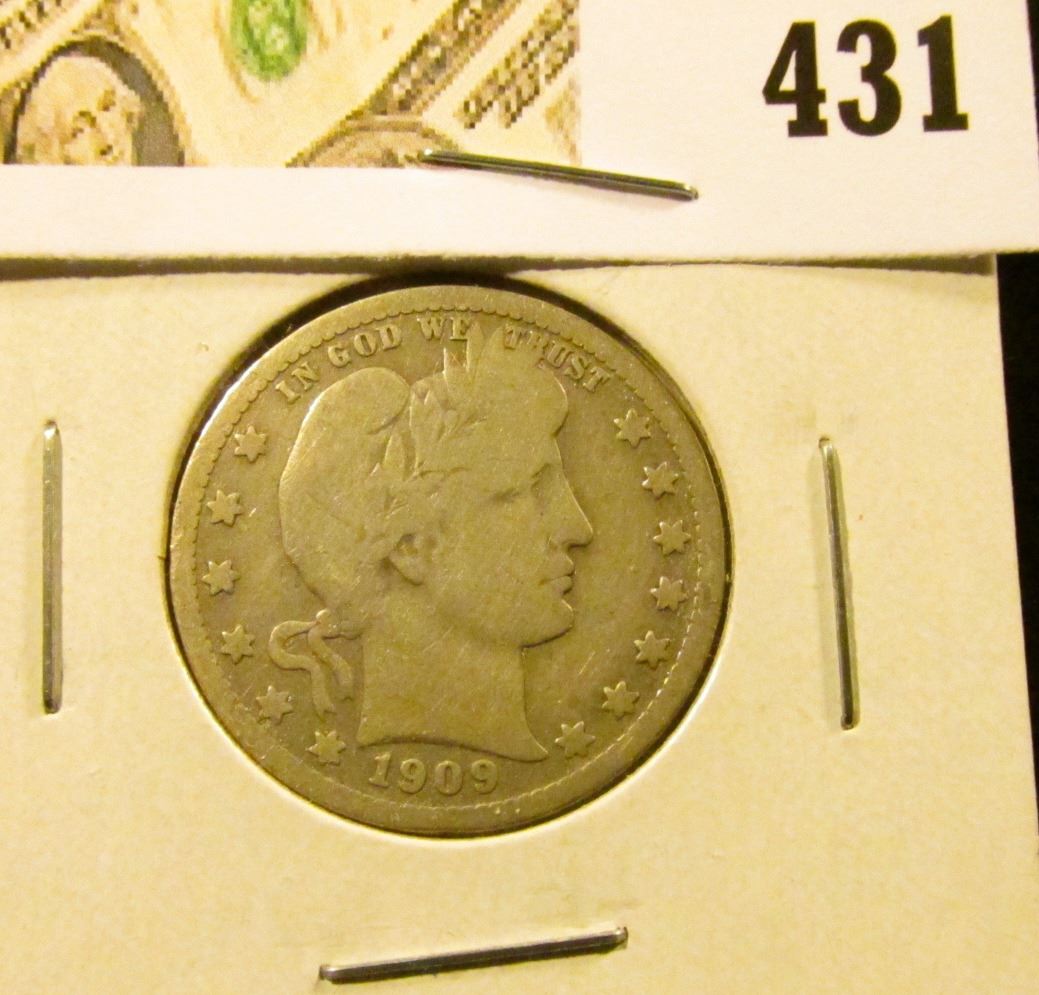 1909 Barber Quarter, VG, value $=10