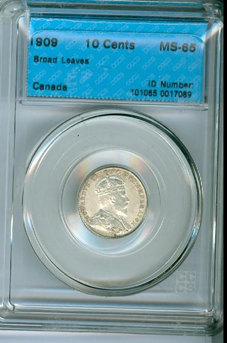 1909 Broad Leaves 10¢ CCCS MS-65 PQ+. Brilliant and lustrous! Excellent strike with clean fields and great surfaces.