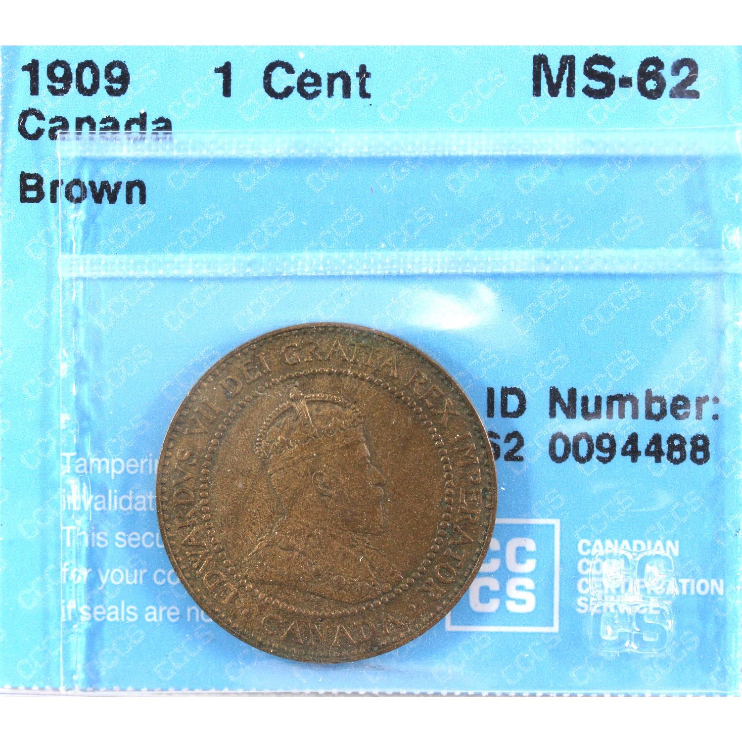 1909 Canada 1-cent CCCS Certified MS-62 Brown
